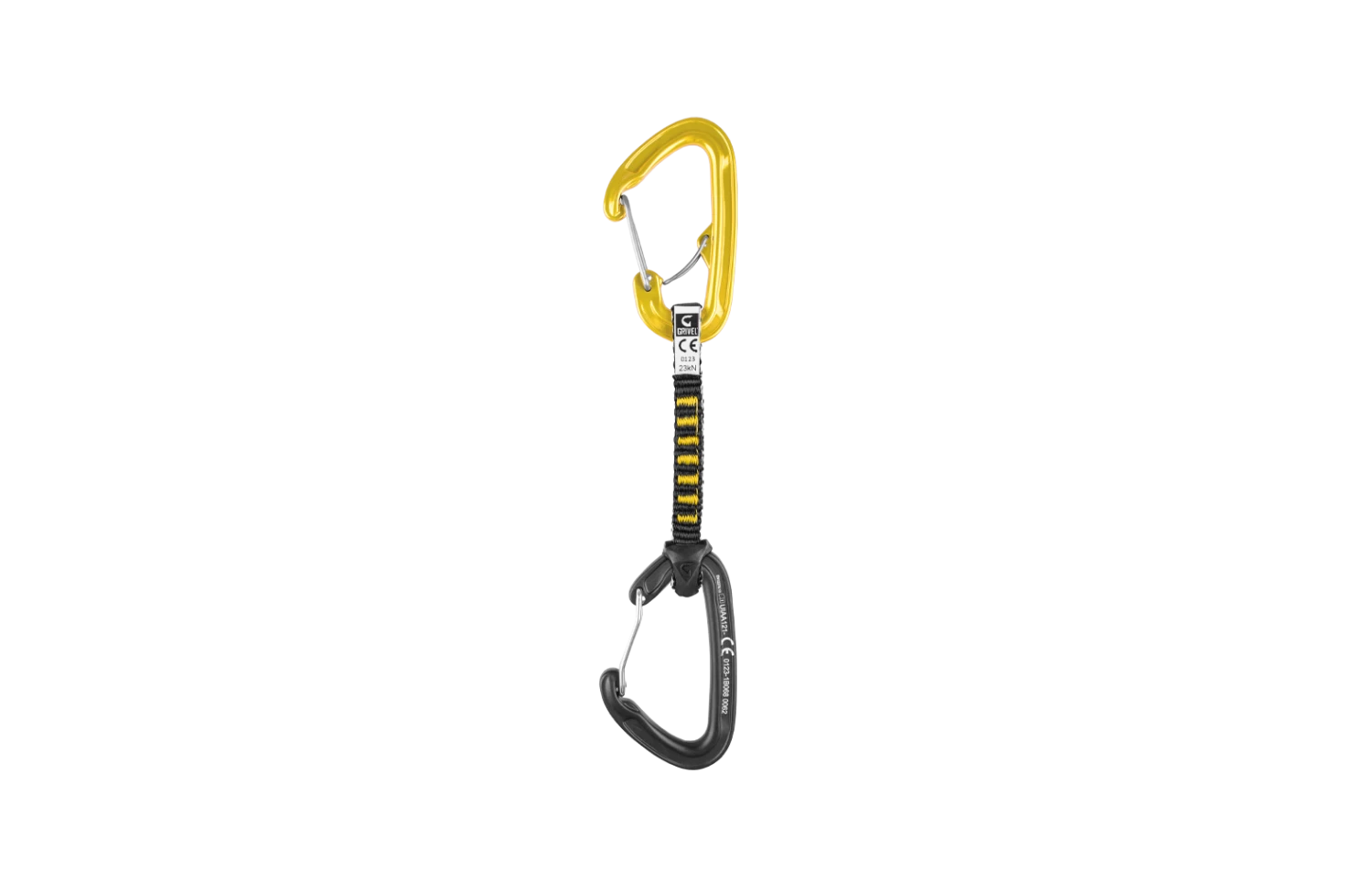 Quickdraw made with one wire carabiners, one with and an . Available in two sizes: 10cm and 16cm.