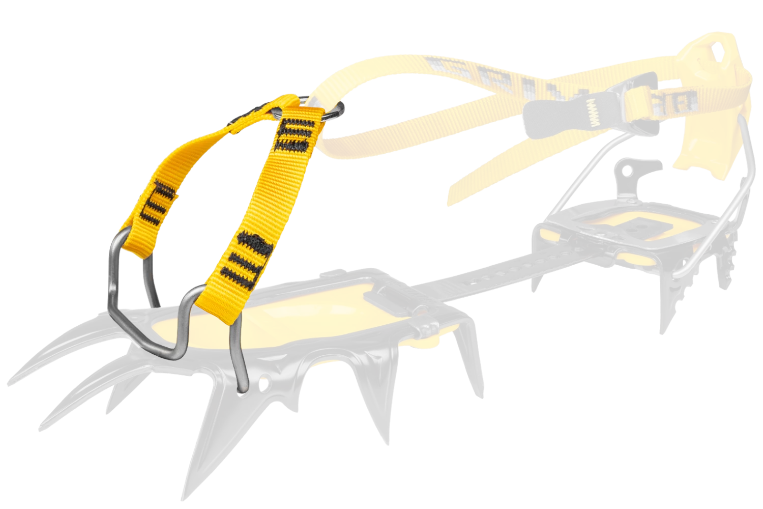 Front bail which allows you to adapt your Cramp-O-Matic crampon to attach mountaineering boots without using front welts.
