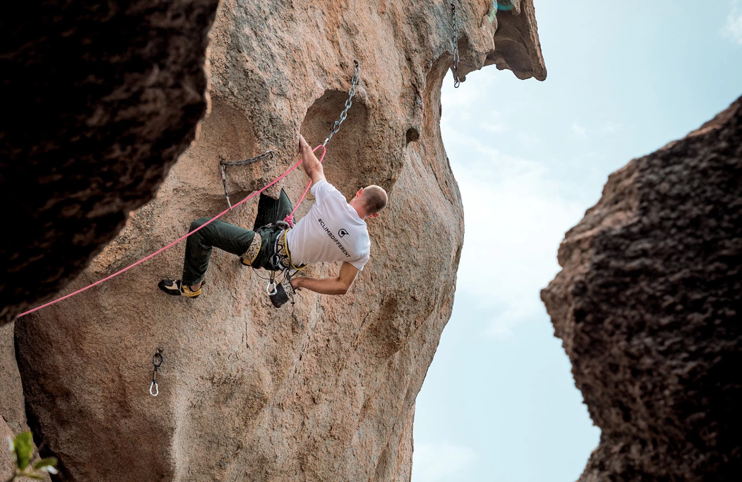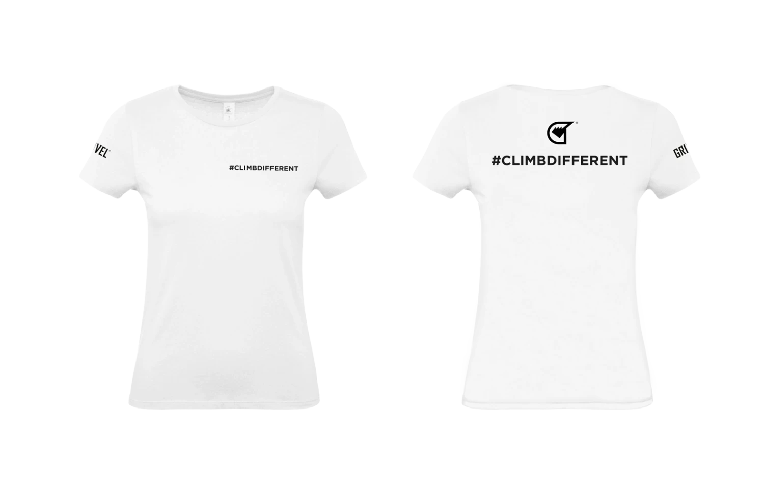White T-shirt in pure cotton for sport climbing. To express a philosophy (climb different) in a simple and stylish way. Available in men and women version.