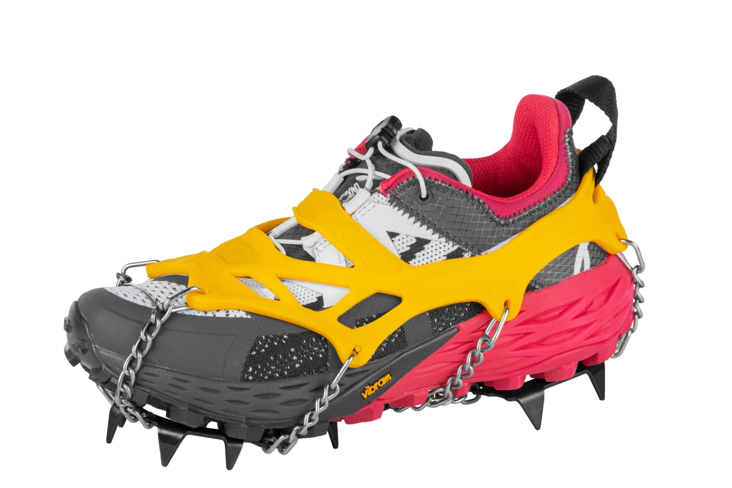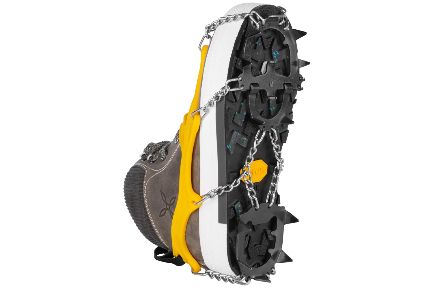 Explorer micro crampon is a sturdy and compact crampon, designed to be used in slippery terrain, with snow, ice, mud. Thanks to the shape of the rubber it adapts to many types of shoes and guarantees stability on the foot. 14 steel points with anti-corrosion treatment. Back lace to facilitate the fit. Supplied together with its zippered pouch. Available in four sizes (S-M-L-XL).