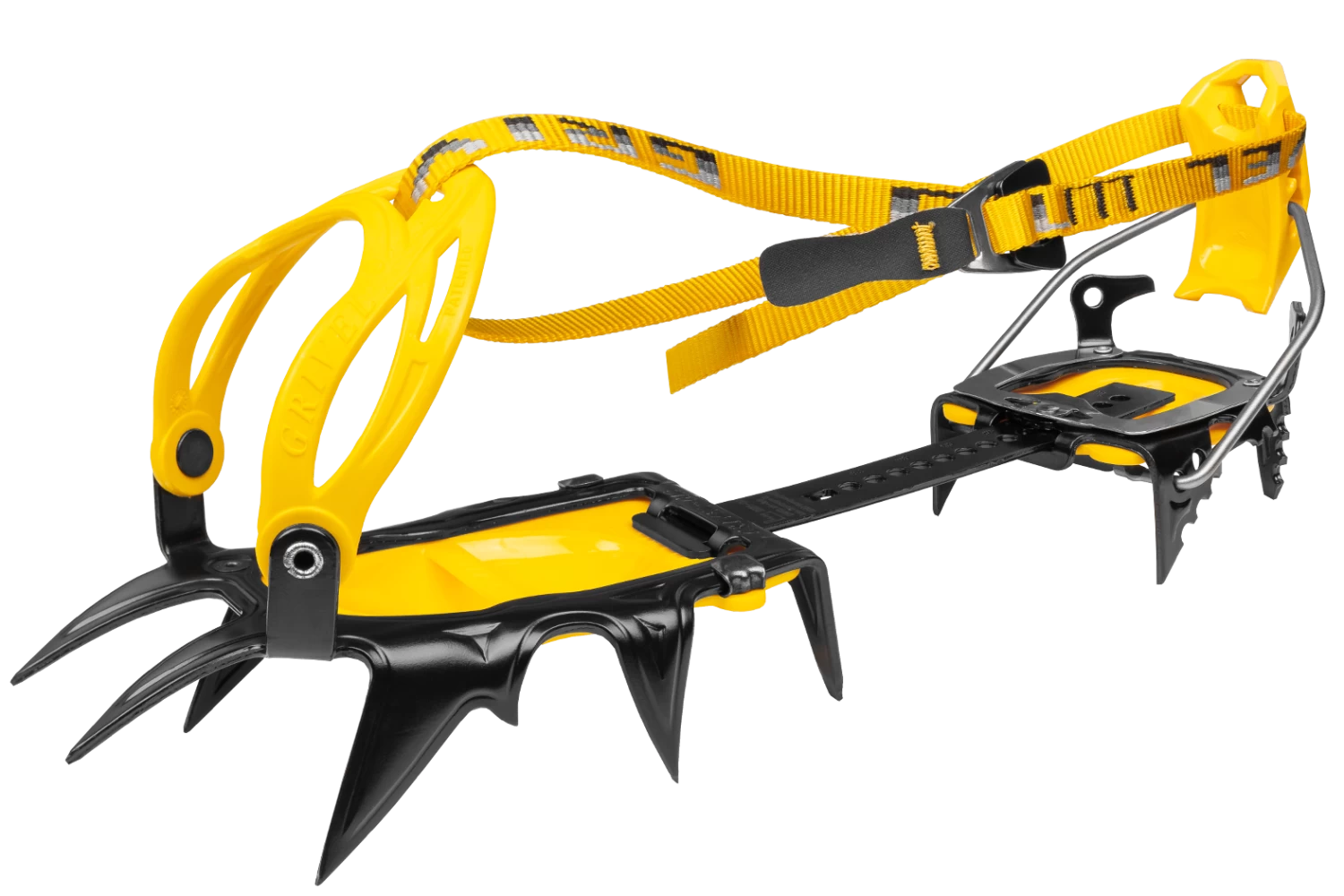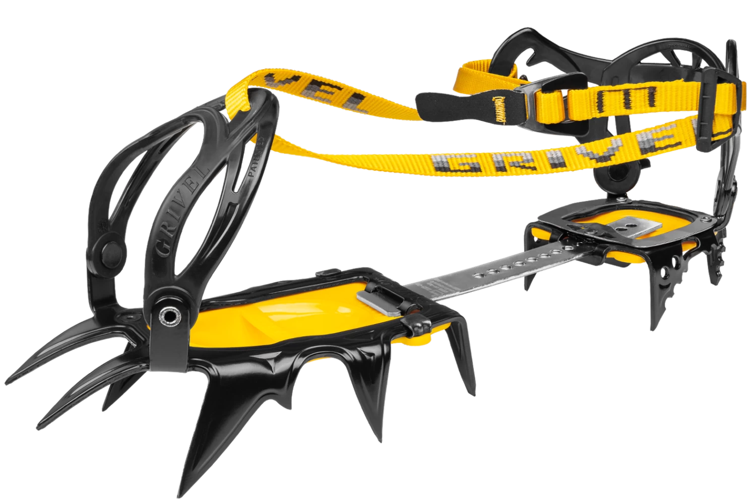 G12 is “the king of crampons”, used for climbing mountains all around the world. It has 12 points, 8 of which in the front and 4 in the back, allowing a perfect stability and performance in all snow and ice conditions. Available with Cramp-O-Matic EVO, New-Matic EVO, New-Classic EVO systems, they are adjustable and adapt to any type of boot. Equipped with the famous Grivel proactive both in the front and the rear. A crampon that makes strength and reliability of its strongest points.