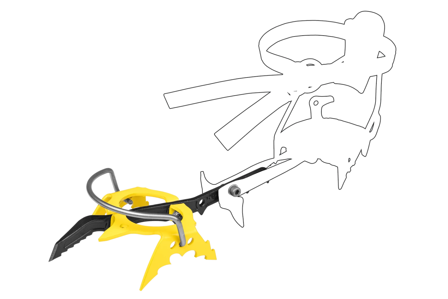 Replacement for crampon front, including bail. Built in steel, it is very robust. Hot forged central point. The package contains two pieces (one right and one left). The mounting bolts are supplied in the pack. Perfect solution to revive the crampon or to transform a into a .