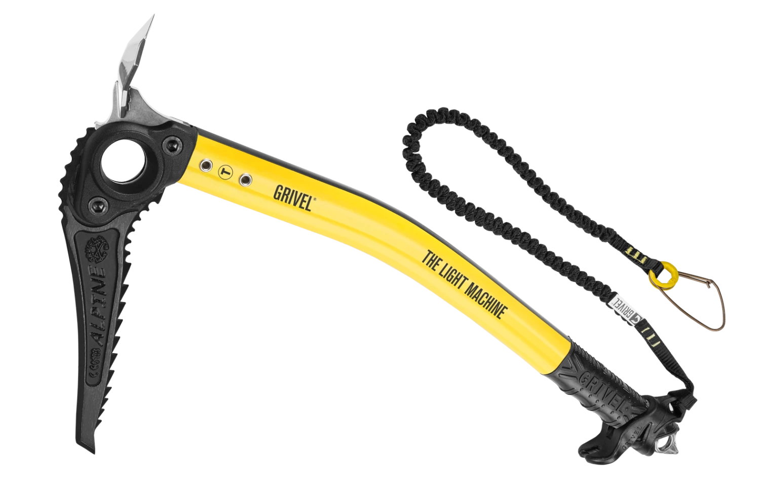 Light machine is a technical, versatile and effective ice axe. The head is interchangeable, with blade and accessories (, , , ). Shaft with technical angle and G bone shape guarantees greater resistance even with thin thicknesses and greater comfort in holding it. It has a rubber grip that offers excellent grip and the innovative Easy slider system which with its elastic webbing secures the ice axe to the harness.