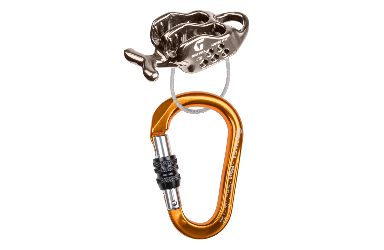 The Master Pro Kit consists of a screw gate carabiner and a device. Ideal and complete solution for belaying, thanks to the shape of the carabiner and to the versatility of the Master Pro, which can be used both as a tube and as a plate, and has multiple braking options.