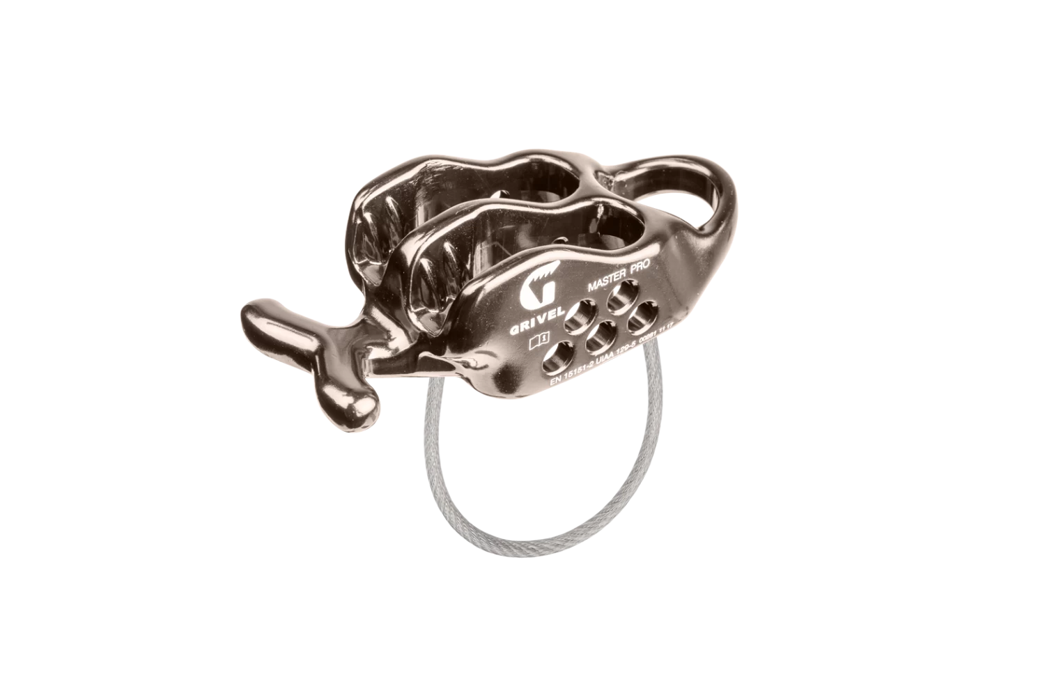 Master Pro was created for belaying and rappelling. It is a versatile, dynamic and reliable tool to minimize the force transmitted to the anchors, the belay and the wear and tear over time of the rope. It can also be used in guide mode as a self-locking plate, to belay a second. The two “horns” that are placed at one of the two ends have two main functions: