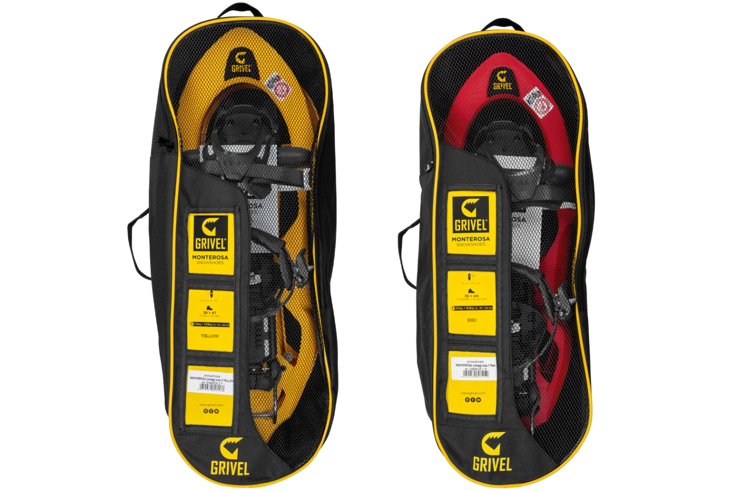 The Monterosa is a rigid snowshoe with a three-dimensional hourglass shape that facilitates the step while walking. It adapts well to all terrains and situations of use. Adjustable size. Metal heel lift. Supplied with practical carrying bag.