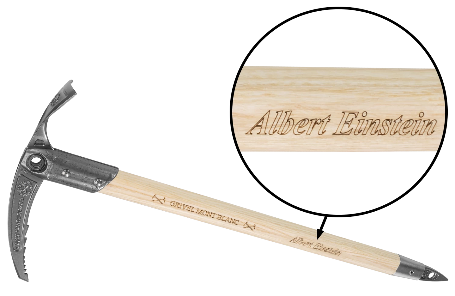 The personalisation is a laser engraving of the wooden shaft of the . The FONT is Times New Roman in italics, for a maximum of 30 characters including punctuation and spaces. Letters can be upper or lowercase. Example: Albert Einstein (in this case it’s 15 total characters).
