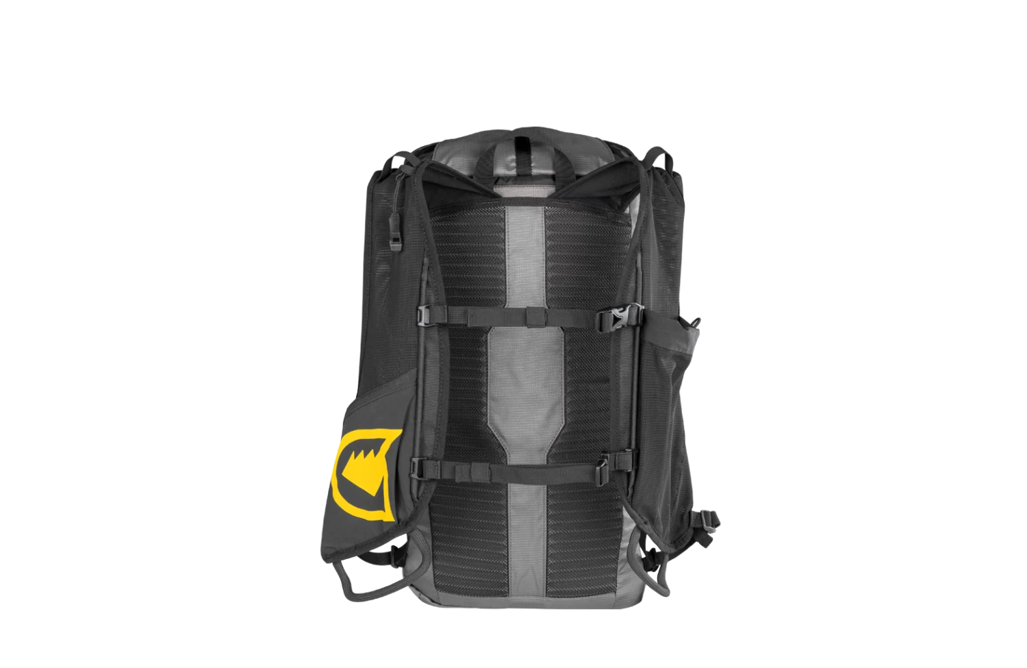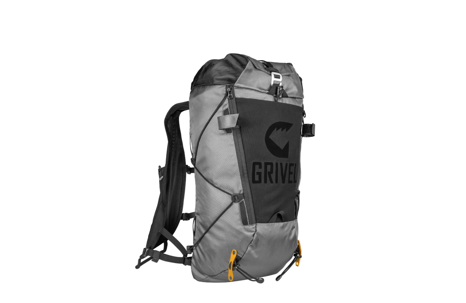 Quick and easy access to the main compartment fron the top or the front opening. Double cord closure for best compacting in all situations allows you to adjust the pack’s height and compression on the fly. Two functional gear loops in the front facilitate the transport of your gear, especially when you use a light and minimalist harness. A smart zip pocket for valuables and a front mesh pocket complete the setup, to always have easy and quick access to all objects that have to be at hand.