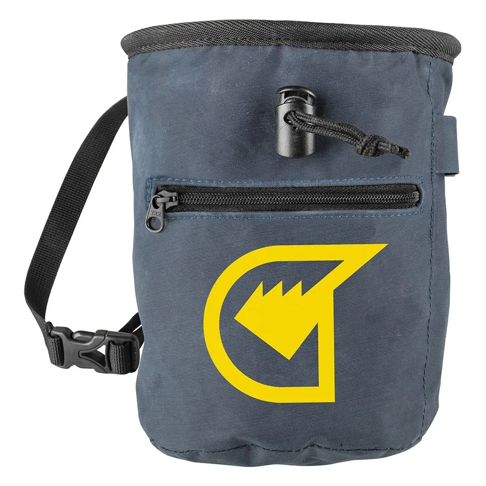 Borsa da arrampicata in gesso con sfera di gesso integrata che può essere riempita attraverso l’apertura frontale con zip.